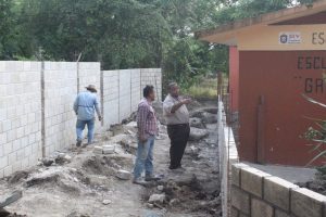 En esta ocasión, el munícipe constató los avances en la construcción de la barda perimetral a un costado de la escuela primaria Gregorio Torres Quintero de la comunidad de Arroyo Florido, obra que permitirá un acceso más directo al campo ubicado a un costado del plantel.