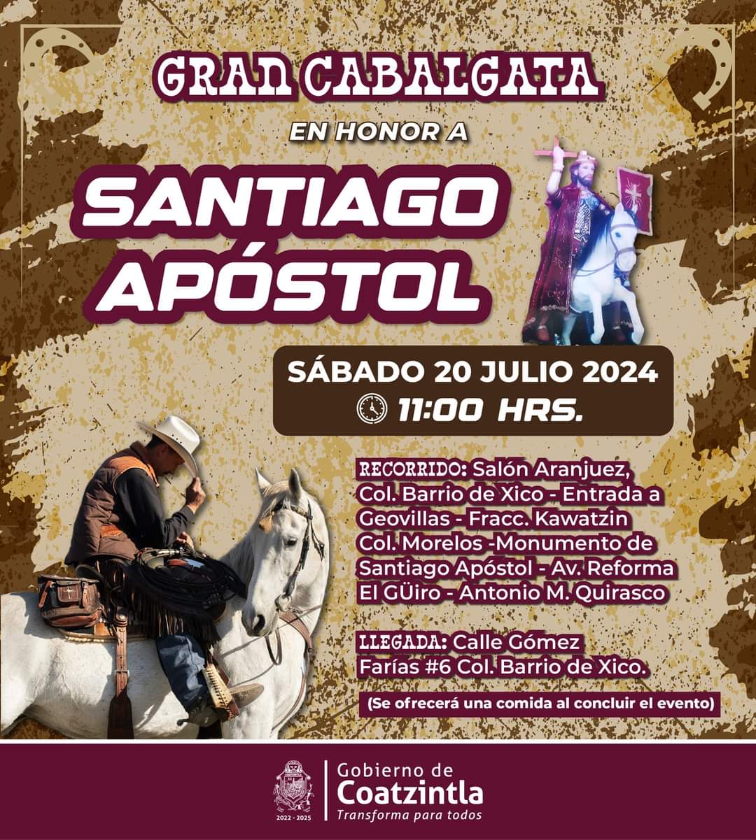 El H. Ayuntamiento de Coatzintla informa e invita a la Cabalgata en honor a Santiago Apóstol.