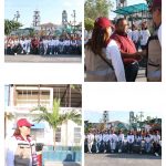 Acompañados por el edil los universitarios externaron su tradicional porra para declarar formalmente arrancada su visita a nuestro Municipio y recorrer su parque “Manlio Fabio Altamirano” así como posar para las fotos del recuerdo en sus murales ubicados en la entrada del Ayuntamiento Constitucional.
