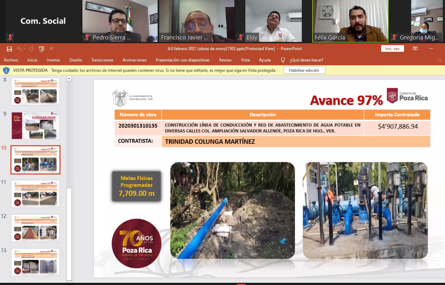 También se aprobó por mayoría el informe de Avances Físicos de Obras o Proyectos correspondientes a las obras en proceso del ejercicio fiscal 2020 (Enero