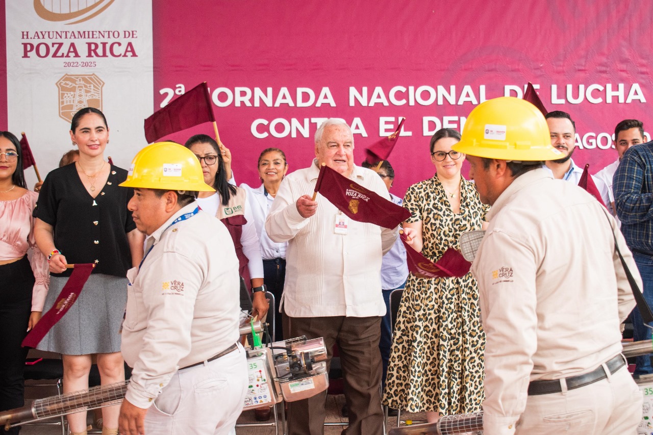 En su intervención, el alcalde de Poza Rica, Fernando Remes Garza, quien también funge como Presidente de la Red Regional de la Red Veracruzana de Municipios por la Salud, informó que su administración se ha sumado de manera proactiva a estas acciones, reforzando las cuatro medidas básicas de prevención del dengue: Lava, Tapa, Voltea y Tira, en conjunto con las Jornadas de Eliminación de Criaderos del Vector que realizan periódicamente en distintas colonias, la limpieza de arroyos, así como la reciente campaña de concientización para la limpieza de predios y lotes baldíos.