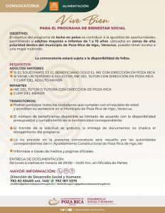 * El Programa Municipal de Bienestar Social del Ayuntamiento de Poza Rica abre convocatoria de leche en polvo.