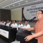 Finalmente, el regidor primero, José Norberto Aguirre Orellán, acompañado por demás ediles, la directora del DIF, Yunis Gómez Ortiz y directores de área, hizo entrega de un reconocimiento al director de la escuela Telesecundaria Francisco I. Madero, Germán Bermúdez Hernández, por la destacada participación en este acto cívico.