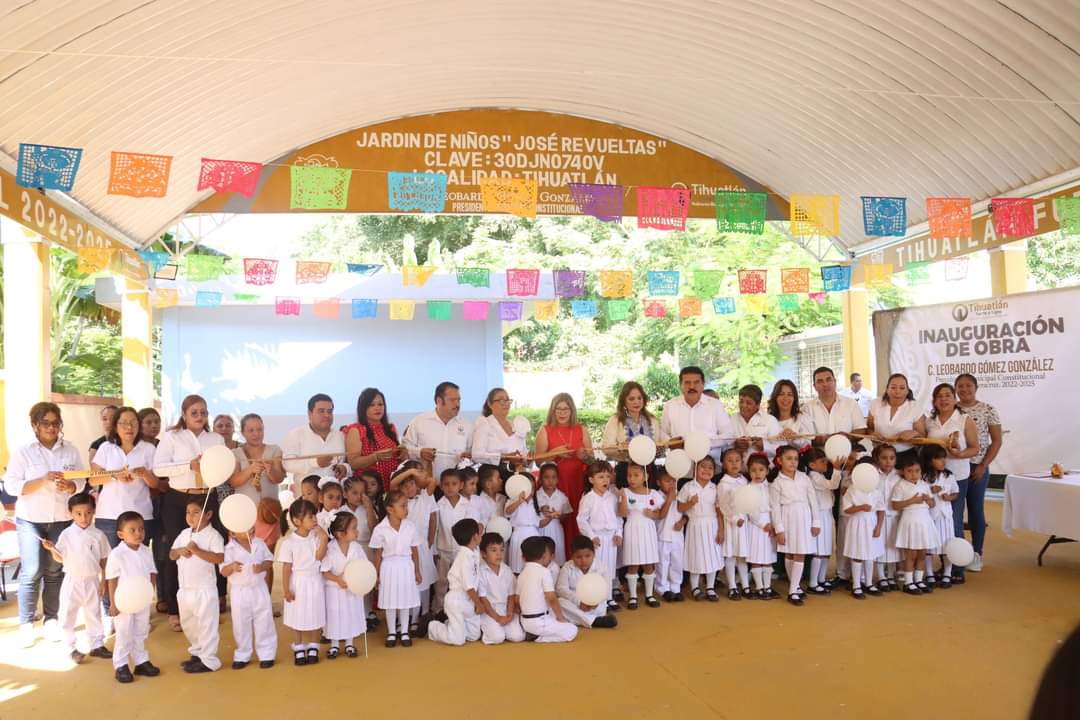 En el cumplimiento con el sector educativo del municipio, este día el alcalde Leobardo Gómez González, inauguró la obra de techado en áreas de impartición de educación física, del jardín de niños José Revueltas, de la colonia Benito Juárez, de la cabecera municipal. Al mismo tiempo, el munícipe presidió el acto cívico de los lunes, desarrollado por alumnos de dicho plantel.